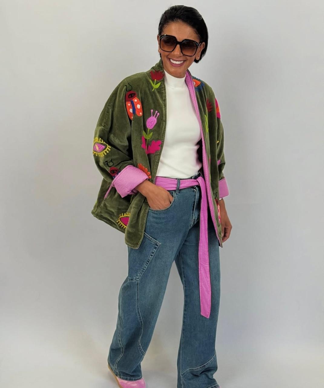 Jacket olive velvet bee
